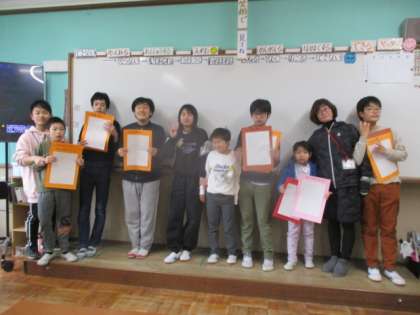 今日は、もらった素敵な通知表を手に持ち、みんなで記念撮影をしました。来月の通知表も楽しみにしています。