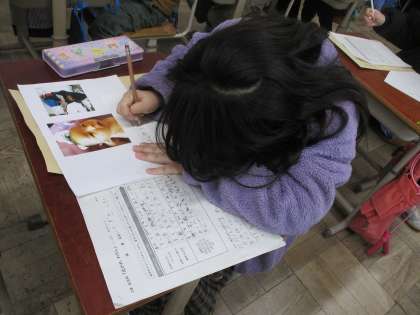 生活科ではアルバムづくりが始まりました。インタビューしたプリントを見ながら、どのことを書こうか考え、下書きをしました。