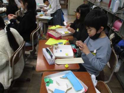 一月は行ってしまい、早くも三学期半ば。いろいろな作品が出来上がり、掲示しています。