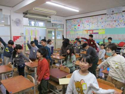 2月の人権児童朝会は「性教育」がテーマでした。『きみは自分のからだの主人公だよ!からだのきもち』という本を読んで、自分や他人の境界線について考えました。人さし指で体のまわりの境界線を書いて、イメージしてみました。
