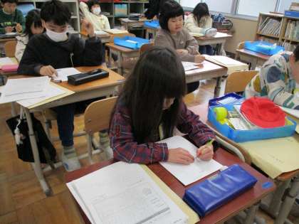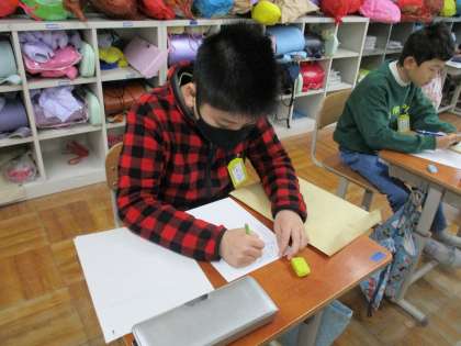 生活科「広がれ わたし」の学習では、インタビューで聞いてきたことをまとめてアルバムを作っています。今日は生まれたころの様子やおうちの人の思いをまとめました。おうちの人がたくさん喜んだり、心配したことを知って、「いっぱい心配かけたんやな〜」と話している人もいました。