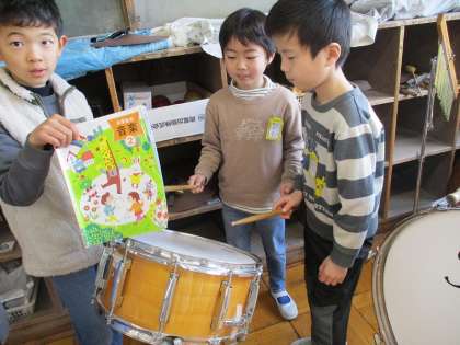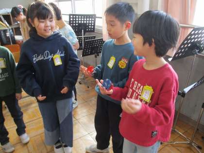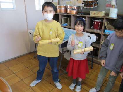 3組が学級閉鎖でできていなかった『かぼちゃ』のリズムうちをしました。自分が選んだ楽器で、パートごとにリズムを打ちました。歌いながら、楽器を奏でる様子はとても楽しそうでした。
