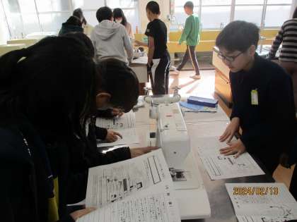 初めてミシンに触りました。部分の確認を行った後はから縫いをしてみました。音にも迫力があるので恐々と取り組んでいる子もいました。
