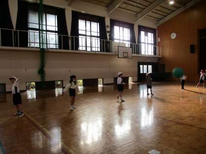 体育科「なげあそび」の学習では、ボールを遠くに投げる方法をたくさん試しました。後ろ足にしっかりとためを作ったり、肩を大きく振ってなげたりしました。フラフープやケンステップを使って、的を作って的あてあそびも楽しみました。