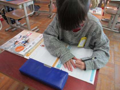 道徳科「森のゆうびんやさん」の学習では、はたらくことのよさについて考えました。日直や給食当番での自分の仕事への取り組み方を振り返りました。「自分が一生懸命はたらくことで、まわりの人が笑顔になるのがうれしい。」と言っていました。