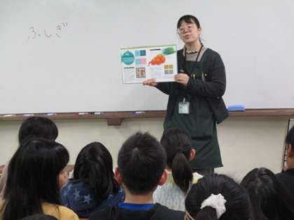 お隣の岩倉図書館の方に来ていただき、ブックトークをしていただきました。 今回は「ふしぎ」をテーマに、いくつかの本を紹介してくださいました。