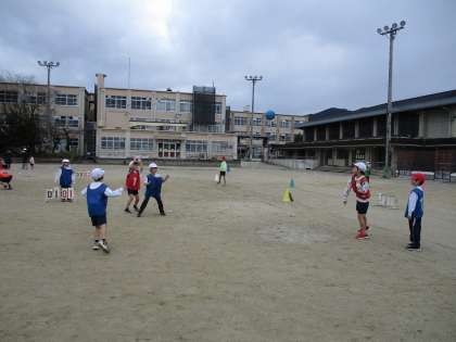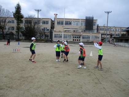 体育科「パスゲーム(2)」の学習が始まりました。2学期にもパスゲームをしていたので、準備片付けは慣れた手つきでやっています。新しいチームでの試合を楽しんでいました。