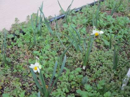 2月とは思えぬ暖かい日が続いた先週、そろそろ花が咲いていないかと捜していると、やはり給食室南運動場側のプランターに植えたスイセンが咲いていました。地域によっては11月ごろからも咲き始めるらしいスイセン。底冷えのする京都では、もっぱら春先一番に咲く花です。が、春一番が2月に吹くという今冬、例年より2週間ぐらい早く咲きました。スイセンはヒガンバナ科。種類も豊富ですが、今回咲いたのは二ホンスイセンです。名前に日本とありますが、原産地は地中海沿岸で、古くに中国を経由し、渡来したといわれています。葉にも球根にも、全草に毒がありますので、ニラに似ていても絶対口にしないように。そこはヒガンバナと同じですね。