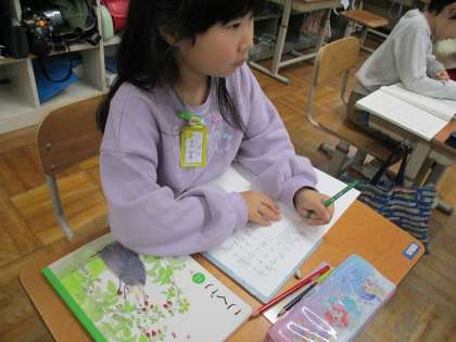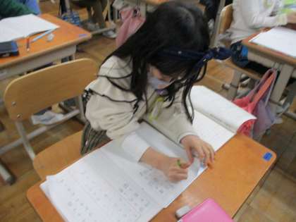 国語科「カンジーはかせの大はつめい」の学習では、2つの漢字を合体させて1つの漢字を作る問題を解いたり、作ったりしました。これまでの習った漢字を振り返りながら、たくさん問題を作れている人がいました。