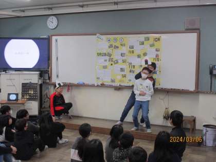 4年生にめいとく学習で学んだ「お米作り・ワークランド」のことについて発表しました。初めは緊張していましたが4年生と話しているうちに少しずつ緊張もほぐれて会話を楽しみながら発表していました。4年生も質問しながら話を聞いてくれていました。最後はお米のプレゼントをして会を終わりました。