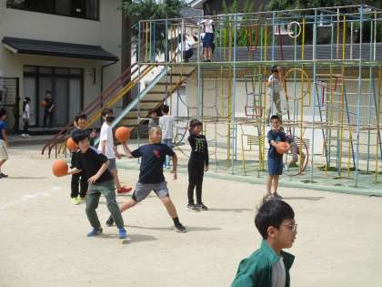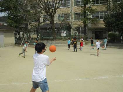 中間休みにドッジボールをしています。どの子も投げるのが上手です。また6年生だけでなく,他の学年の友達とも一緒に遊んでいます。上級生として優しく接していてくれて頼もしいです。