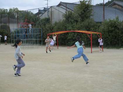 昼休みに鬼ごっこをしました。逃げて・追いかけてどの子も懸命に走っていました。たくさん運動して強い体を作ろう!!!