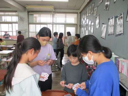 教室での休み時間の様子です。教室ではトランプで遊ぶ子が多いです。特にばば抜きでは相手の表情を読み取りながら楽しんでいます。