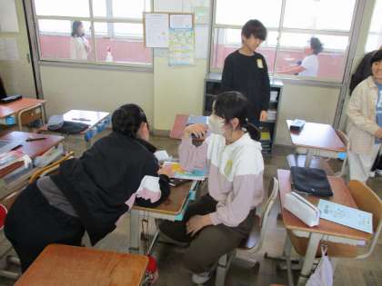 教室では友達と仲良く話しています。休み時間は次の次の時間までのリラックスタイムです。いろいろな方法でリラックスできるといいですね。