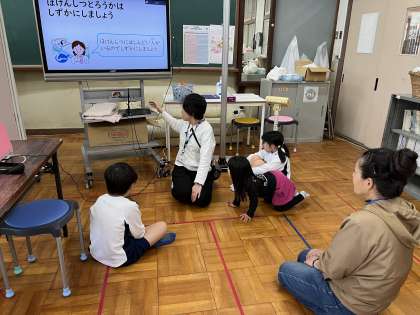 4月19日(金)の様子です。今日は身体計測・視覚・聴力検査を行いました。1年生にとっては初めての計測でしたが,2年生と5年生のお兄さんお姉さんが,率先してやり方を教えてくれました。保健室の先生のお話も静かに聞くことができました。