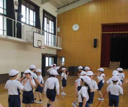体育科「からだほぐしの運動」の学習を行いました。体を動かすことの楽しさを感じ、友達と協力しあいながら進めることをめあてに学習を進めました。ボールを体に挟んでいも虫にのように進む運動では、前の子が少しでも早く歩くとボールが落ちてしまうので、「ゆっくり歩いて」「1.2の合図で進もう」など声を掛け合いながら取り組んでいました。他にもペアで手押し相撲などに取り組みました。来週からはリレーの学習に取り組んでいきます。
