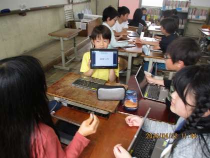 国語科「ひみつの言葉を引き出そう」の学習では、自然な会話の中でひみつの言葉を引き出すように工夫しながら会話しました。相手に気づかれないように、かつ自然な流れで引き出すのに苦戦しながらも、楽しそうに会話していました。