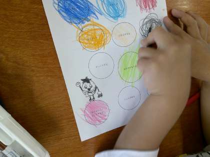 うれしい、はずかしい、はらが立つ…いろいろな気もちに色を塗って、交流しました。