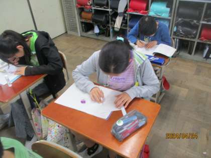 算数では、線対称な図形の作図を参観していただきました。いつもはたくさん発言をしながら考える子どもたちですが、今日は緊張からか少し静かに話を聞く姿が見られたと思います。6年生の算数の学習も進み、どんどん難しくなっていますが、自主学習で復習したり、算数プリントで疑問点を解決したりと自分たちで考えながら学ぶ姿も日々見られます。