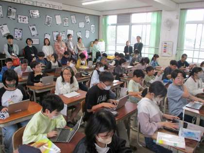 食べ物クイズをしました。文章から食べ物が少しずつ分かるように書いたり,比喩表現を使ったりと工夫しながら進めました。どの子も表現が豊かな文章でした。最後は参観に来てくださった保護者の方にもクイズを解いてもらいました。