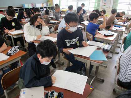 帰り道の授業は終わりに入り,最後の感想を書きました。これまで学習してきた内容を振り返りながら登場人物の心情の変化や文章の構成に着目しながら感想を書きました。