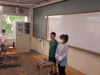 今年度初めての人権・児童朝会がありました。緊張しながら児童会本部の子が司会進行を進めてくれました。また,各委員会の委員長の自己紹介もあり,どの委員長も堂々と自己紹介をしてくれました。