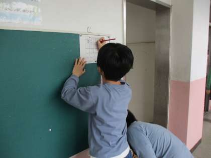 今日から環境委員会をスリッパ点検が始まりました。学校中のトイレのスリッパがきちんとそろっているか確認して、トイレスリッパカレンダーにチェックをしています。初日は5年生が当番の日で、初めての当番活動に張り切って取り組んでくれていました。カレンダーが花丸で埋まるように声掛けしていきたいですね。