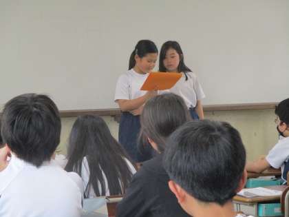 学級代表のお友達が学活の時間に代表委員会で話し合った内容を報告してくれました。