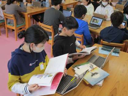 今日は1組が図書館へ行って戦争について調べ学習をしました。本から学ぶことが多かったです。さらに友達が調べたことをさらに自分の知識にしている子がいて,とても深い学びになったと思います。