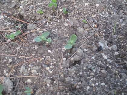 こぼれ種がいろいろと発芽しています。中でも、校門脇の花壇からは、アサガオの芽が顔を出しました。栽培委員会では5月の活動日に種まきをする予定ですが、先を越された感じです。周りに柵などもなく、どうやってツルを誘引しようかと思案してしまいます。ツルが伸び始めるまでに考えましょう。