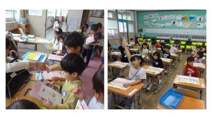 図書館の使い方を教わってはじめて自分で本を選んで借りることができました。色んな本を紹介してもらいました。学習も手をあげて発表し、話を聞いて前向きに取り組んでいます。給食も、楽しく食べました。GW明けも元気にがんばっていきましょう。