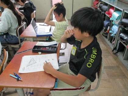明日の対称な図形のテストに向けて復習問題に取り組みました。友達で分からない問題を教え合いながら進めました。細かい部分に気をつけてテストに挑みましょう!