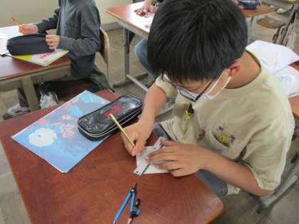 線対称の図の書き方も上達してきました。明日はいよいそテストです。これまでの成果を出せるよう頑張ろう!!!
