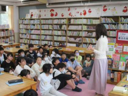 1組が図書館へ行きました。図書館司書の先生にこれからどのようにして本を読めばいいか,成長するにはどうすればよいか教えていただきました。これからどのように本と向き合っていくか楽しみにしています。