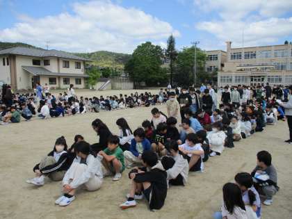 火災を想定した避難訓練をしました。訓練でできないことは実際起きたときにはできにくいです。待ち時間もハンカチで口をふさいで,姿勢を低くしてと大切なことを意識しながら新権威取り組んでいました。