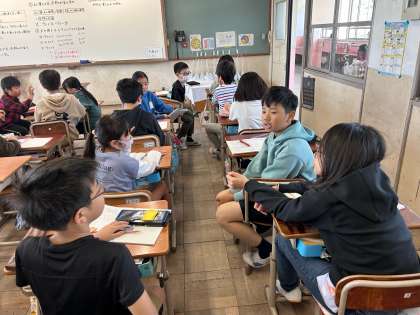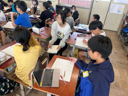 xやyを使って数量の関係を式に表し、値を調べる学習をしました。前回の授業では文字を「書きにくい!」と言っていた子どもたちでしたが、「だんだん速くかけるようになってきた!」と喜んでいました。xの値が変化していくのにあわせてyの値も変化していくことに気づき、変化の規則性を応用して考えることもできるようになってきました。
