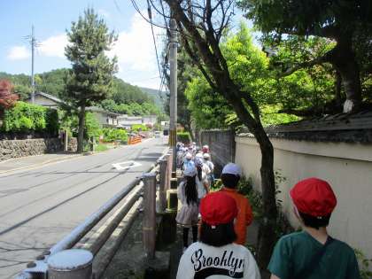 生活科の学習で、町探検に行きました。今日は、岩倉実相院方面へ行きました。洛陽病院の側を通りながら「建物大きいね。お医者さんがたくさんいるのかな。」とお話をしたり、実相院の山門を眺めたりなど、イキイキとした子ども達の様子が見られました。