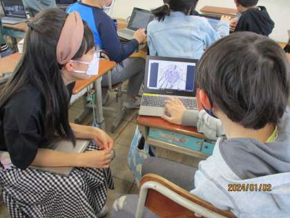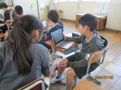 教科書のページから自分たちが学びたいことをたくさん見つけ出し、自分の思いを教室の様々な場所で話していました。