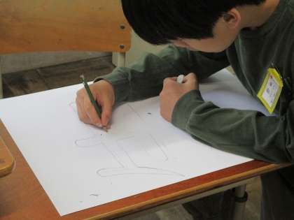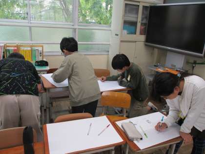 1年生を迎える会に向けて児童会本部の5年生も頑張っています。