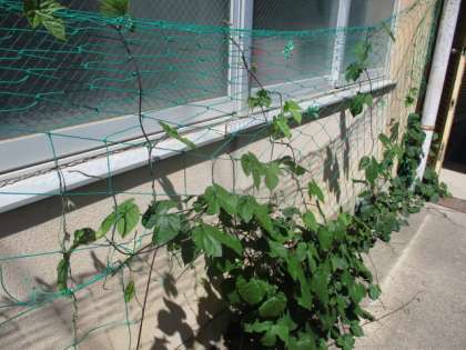 宿根の西洋アサガオが、初夏の日差しを浴びてぐんぐん伸びてきました。昨年よりも速いペースのような気がします。水は雨などで補給されていると思いますが、栄養分はどうしているのでしょう。昨年は花の数が少なく、そろそろ終わりかなと思っていただけに、今年の伸びには驚きです。上の方にはなかなか伸びなくて、人の手でネットに絡ませてやる必要がある、手のかかる西洋アサガオです。果たしてつぼみをつけるのでしょうか。