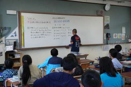 少しずつ複雑な式、計算になってきました。いろいろな値をxに入れて、対応するyの値を丁寧に求める姿が見られました。それぞれが自信をもって発表できるようになってきています。毎日コツコツと努力している結果が見えてきて嬉しい限りです。