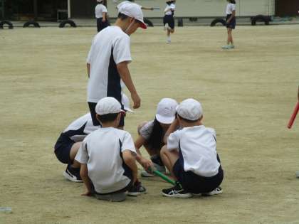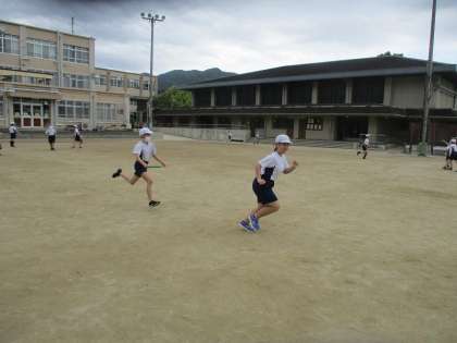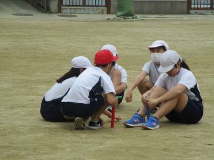 うまくいかないときには話合い、上手に全力走でバトンパスができるように練習を繰り返しています。