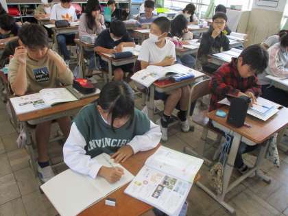 ものの燃え方の練習問題に取り組みました。これまで学習したことを教科書やノートを振り返りながら問題に取り組みました。来週はテストがあります・問題を解き終わっても見直しをしっかりね,