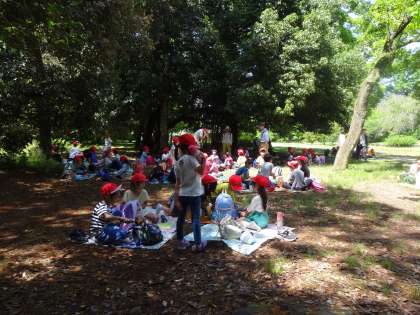 天気もよく清々しい風が吹いていました。おなかもすいてお弁当が、一段とおいしかったようです。しっかり食べた後は、広場で鬼ごっこをしたり、芝生の上で寝転んで遊んだりしました。とても楽しい一日を過ごすことができました。
