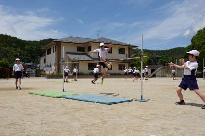 走り高跳びの練習を続けています。最近はお互いに声掛けをし、どうしたらうまく跳べるのかアドバイスをしあって活動しています。日に日に跳べる高さも上がってきていて、学習の成果が見られます。