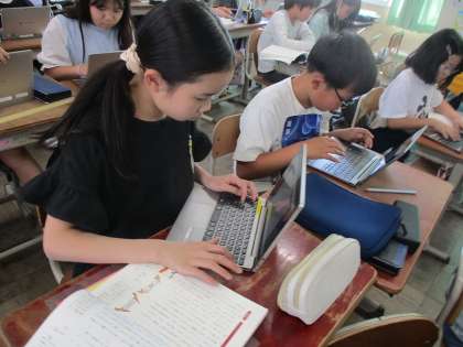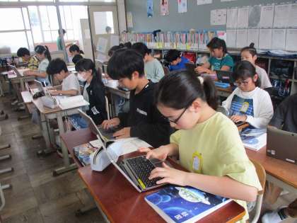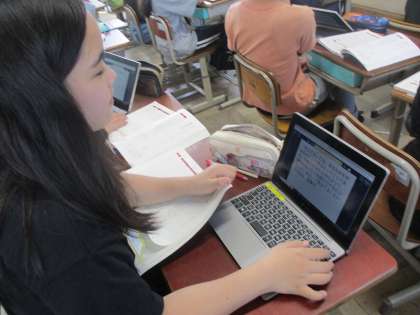国語科「見立てる」の学習では、要旨をとらえ、自分の考えをまとめました。要旨をとらえるときには、筆者の考えがまとめられている段落、繰り返し使われている言葉に着目しながら、要旨をまとめました。