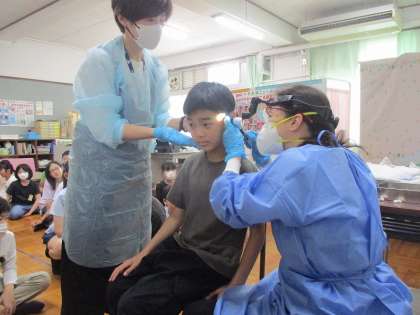 耳鼻科検診がありました。みんなしずかに受けられていました。校医の先生にきちんとお礼を言えている人もたくさんいました。