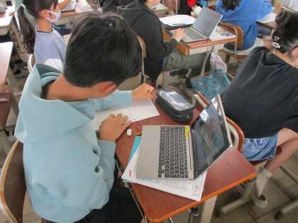 動物なりきりクイズを出すために今日は動物が食べるものについてのやりとりをしました。どの子もどういう表現がいいかを考えていました。また、書く活動も頑張りました。中学に向けて書くことも少しずつ頑張っていきましょう!