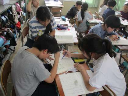 国語科「言葉の意味が分かること」の学習では、文章全体の構成をとらえました。事例がなんのためにあげられているのか、筆者の考えがまとめられているのはどこの部分か、などに着目して読めました。また、はじめ・中・おわりがどのように分けられるか、友達と話し合う際には、「だって,つまりって言葉があるから・・・」などと根拠をもって考えを述べられている姿も見られました。