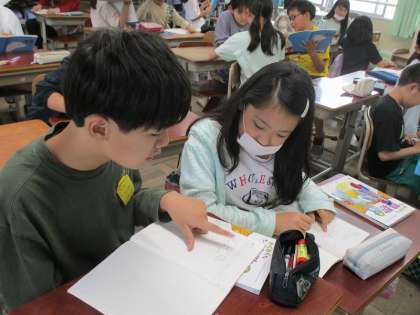これまでの計算の仕方を参考に計算方法を考え、隣同士で伝えあいました。